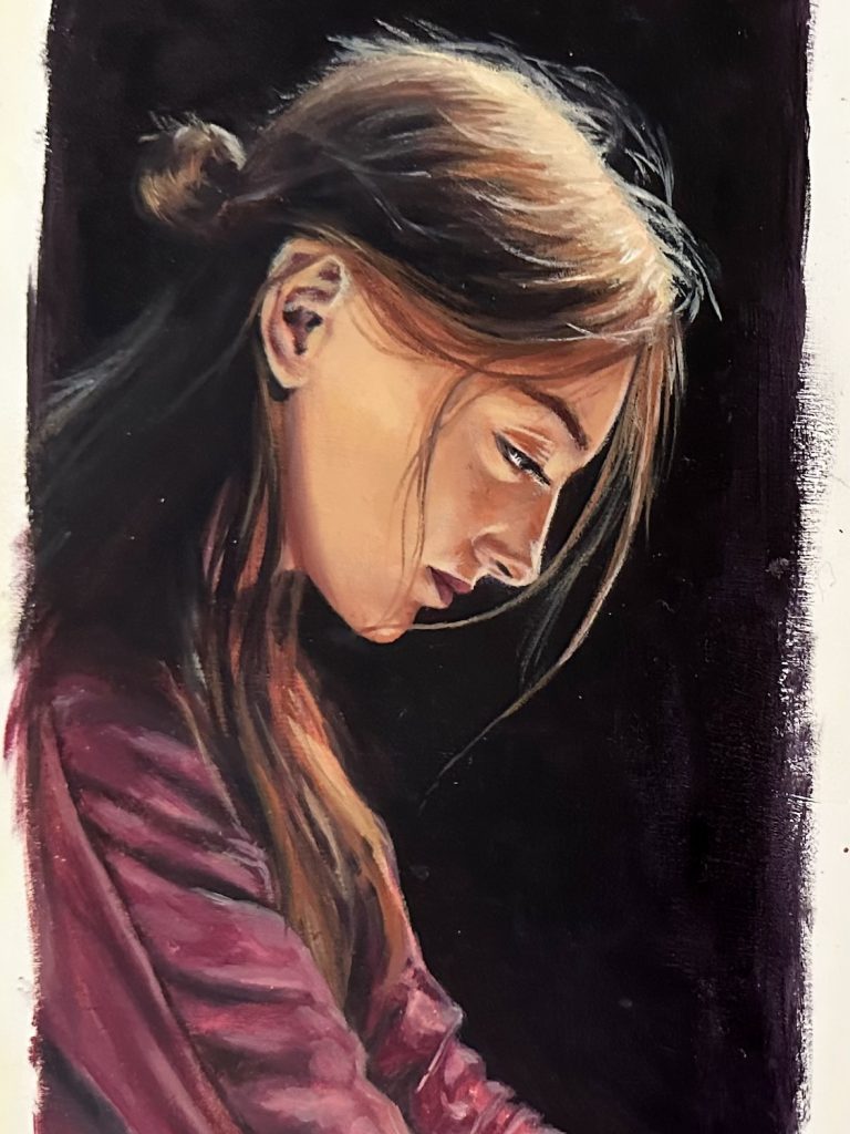 Que ce soit au fusain, à l’huile, à l’acrylique, à la gouache, au graphite ou même en numérique, c’est lorsque je m’exprime à travers l’art que je suis le plus heureuse. Il me permet d’exercer ma créativité et de me perdre dans chaque coup de pinceau ou de crayon.